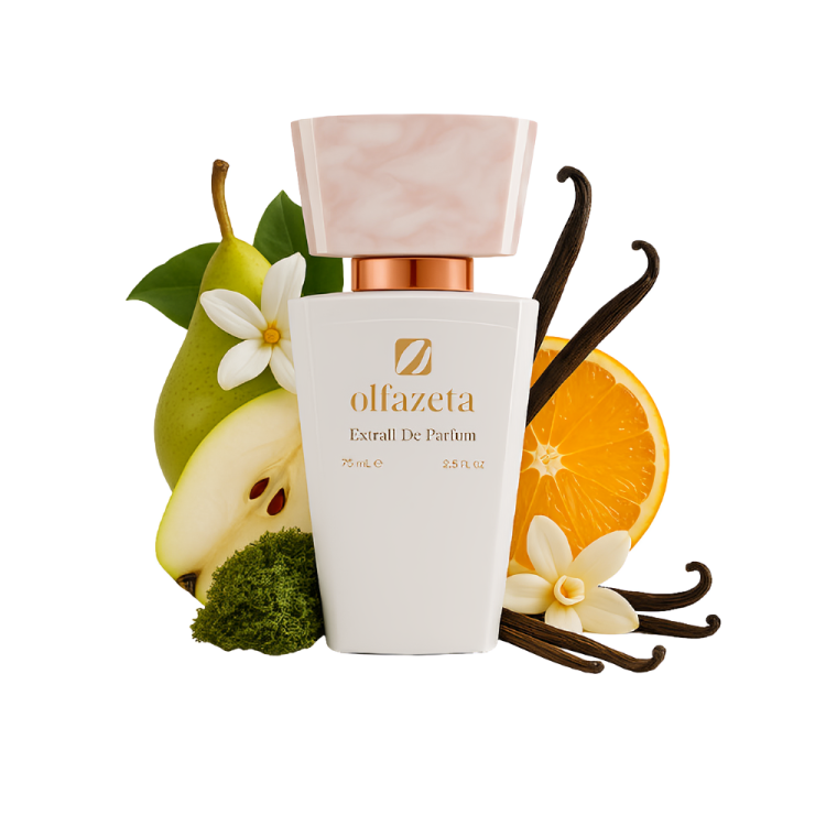 Parfymolja, bergamott, päron, jasmin, mossa, amber, vanilj.